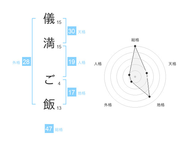 儀満 ご飯さんの総格は47画の5点!