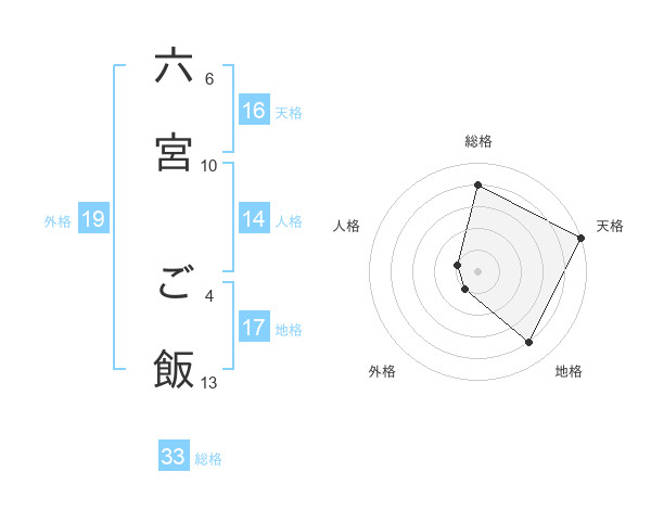 六宮 ご飯さんを姓名の画数から五運を鑑定