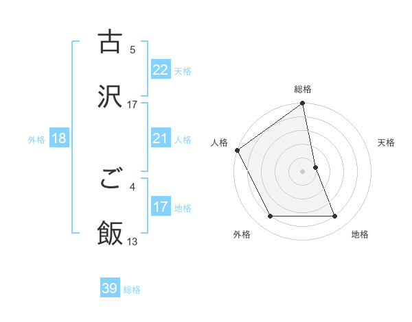 古沢 ご飯さんの総格は39画の5点!