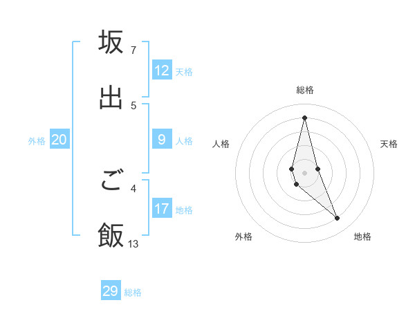 坂出 ご飯さんを姓名の画数から五運を鑑定