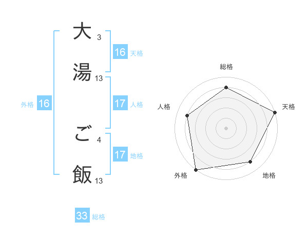 大湯 ご飯さんを姓名の画数から五運を鑑定