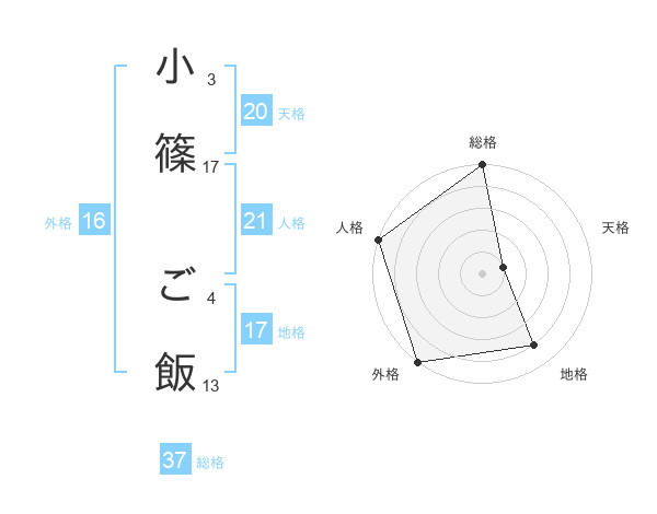 小篠 ご飯さんを姓名の画数から五運を鑑定