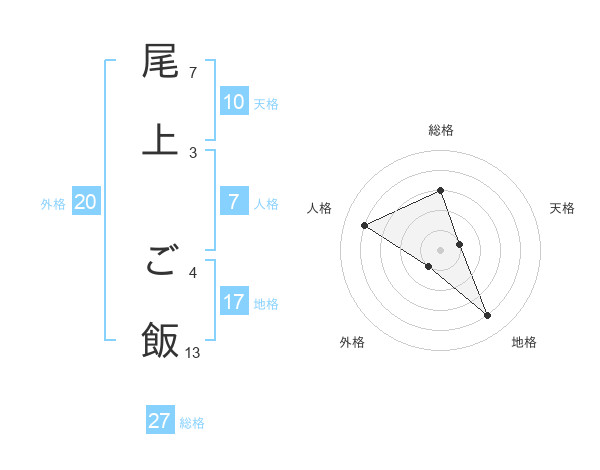 尾上 ご飯さんを姓名の画数から五運を鑑定