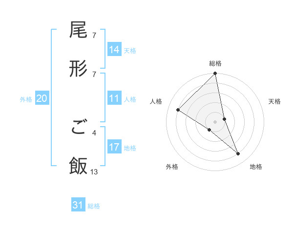 尾形 ご飯さんを姓名の画数から五運を鑑定