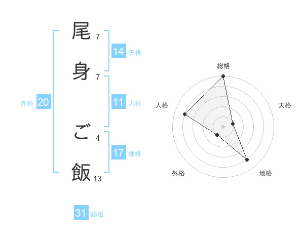 尾身 ご飯さんの総格は31画の5点!