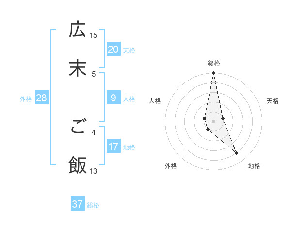 広末 ご飯さんの総格は37画の5点!