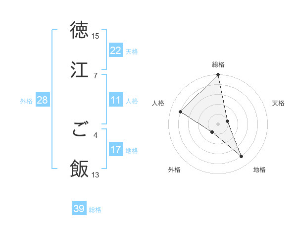 徳江 ご飯さんの総格は39画の5点!