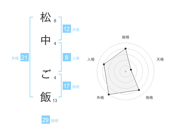 松中 ご飯さんを姓名の画数から五運を鑑定