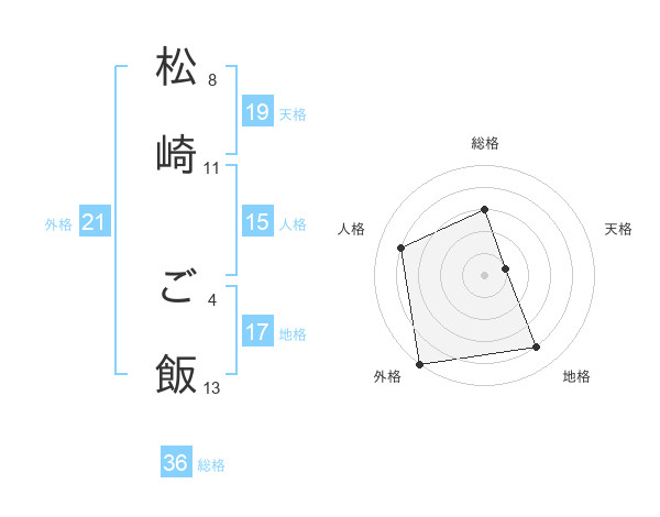松崎 ご飯さんの総格は36画の3点!