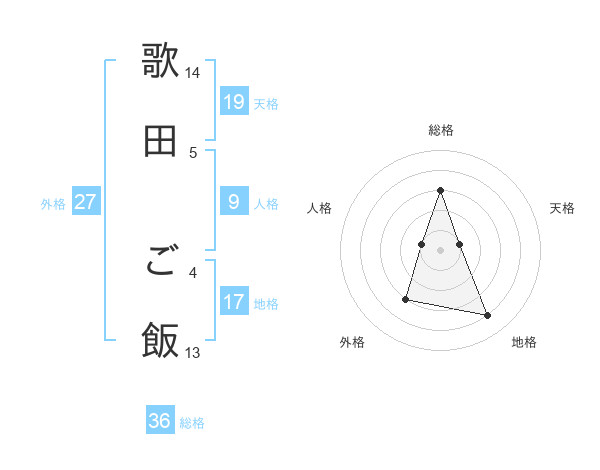 歌田 ご飯さんの総格は36画の3点!