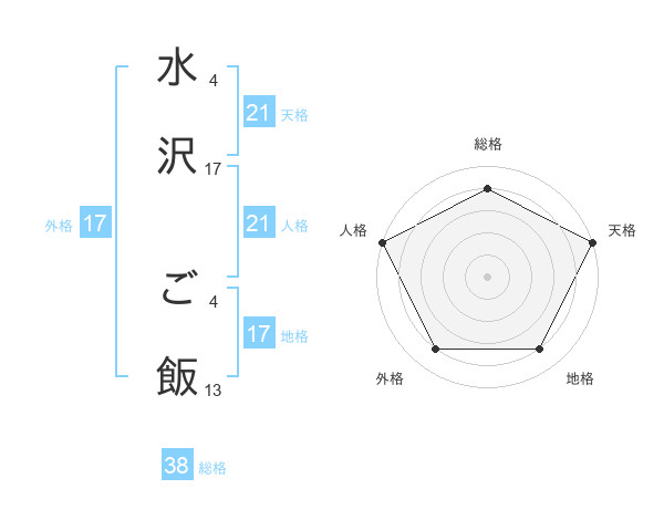 水沢 ご飯さんを姓名の画数から五運を鑑定