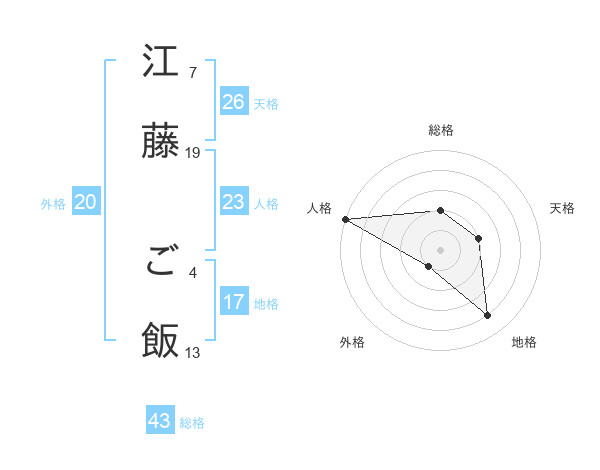 江藤 ご飯さんを姓名の画数から五運を鑑定
