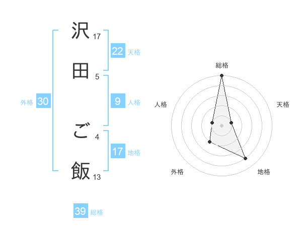沢田 ご飯さんを姓名の画数から五運を鑑定