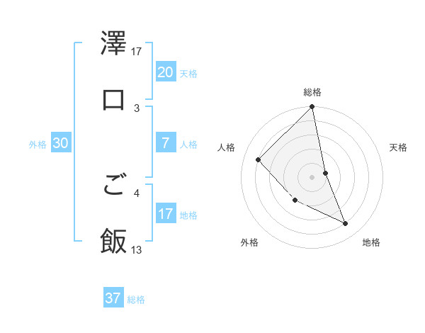 澤口 ご飯さんの総格は37画の5点!