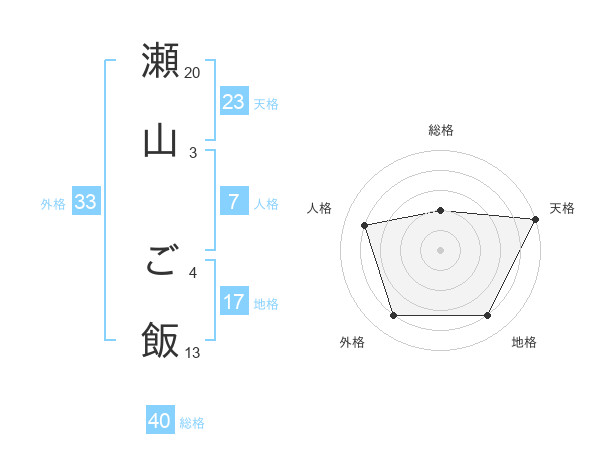瀬山 ご飯さんの天格は23画の5点!