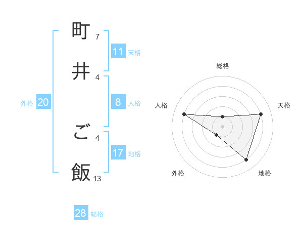 町井 ご飯さんを姓名の画数から五運を鑑定