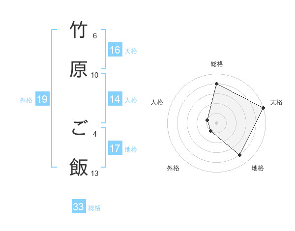竹原 ご飯さんの天格は16画の5点!