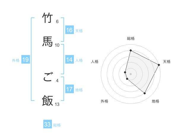 竹馬 ご飯さんの天格は16画の5点!