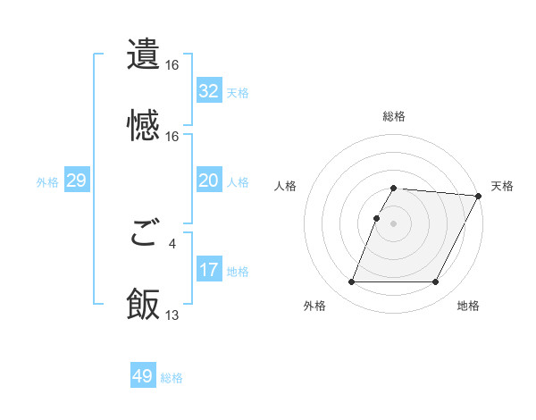 遺憾 ご飯さんの総格は49画の2点!