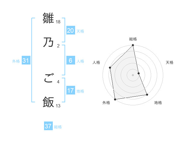 雛乃 ご飯さんの総格は37画の5点!