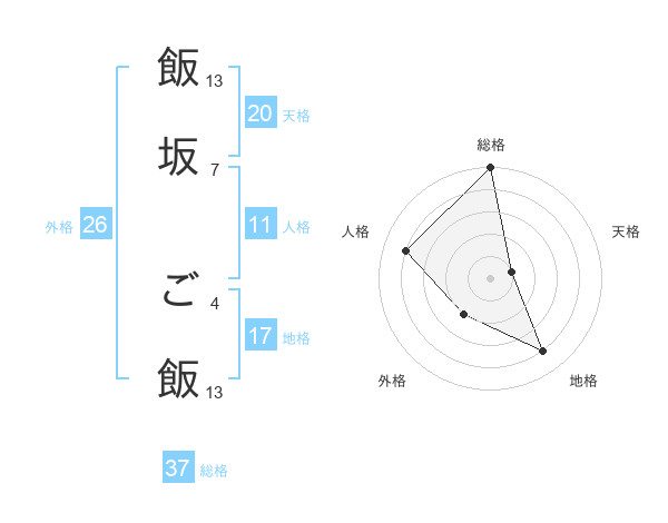 飯坂 ご飯さんの総格は37画の5点!