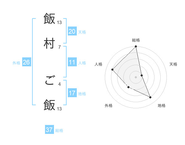飯村 ご飯さんを姓名の画数から五運を鑑定