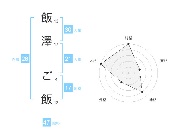 飯澤 ご飯さんの総格は47画の5点!