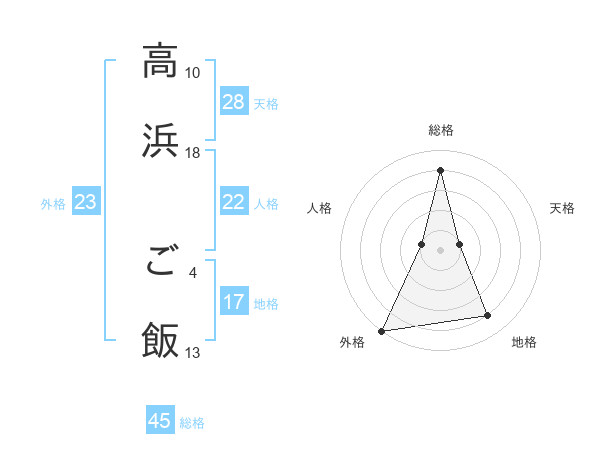 高浜 ご飯さんを姓名の画数から五運を鑑定
