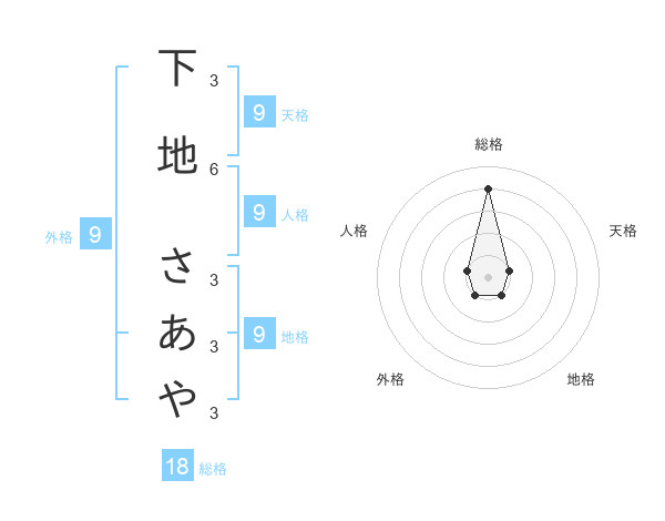 下地 さあやさんの総格は18画の4点!