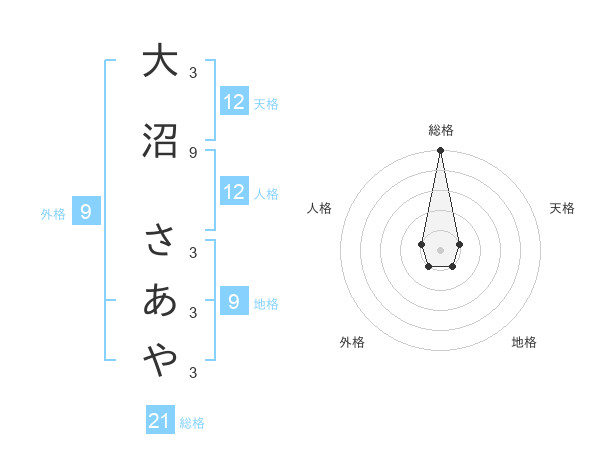 大沼 さあやさんの総格は21画の5点!