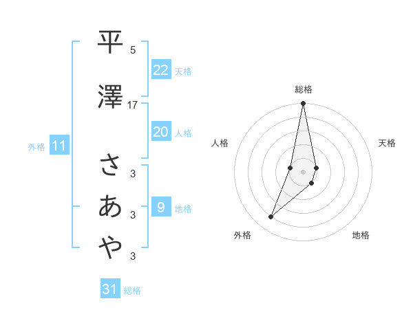 平澤 さあやさんを姓名の画数から五運を鑑定