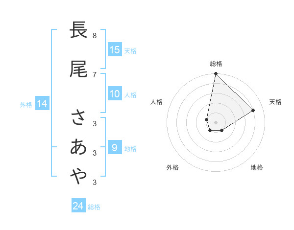 長尾 さあやさんの総格は24画の5点