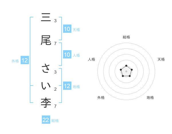 三尾 さい李さんの総格は22画の1点!