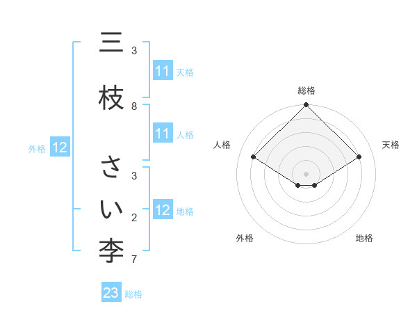 三枝 さい李さんの総格は23画の5点!