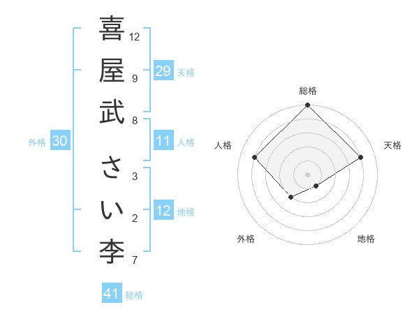 喜屋武 さい李さんの外格は30画の2点!