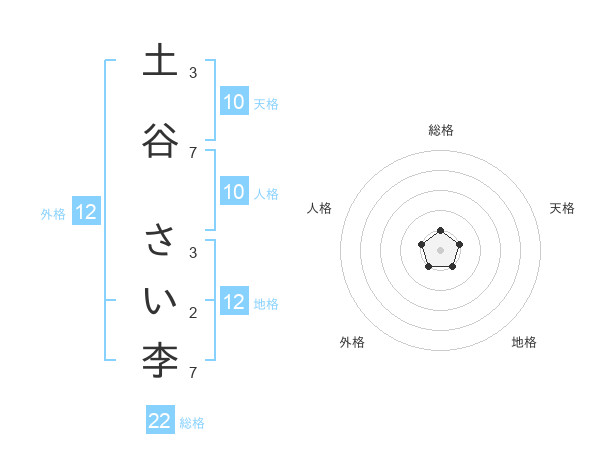 土谷 さい李さんを姓名の画数から五運を鑑定