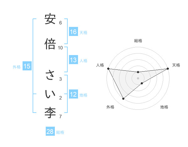 安倍 さい李さんの天格は16画の5点!
