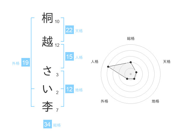 桐越 さい李さんの総格は34画の2点
