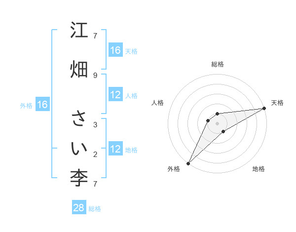 江畑 さい李さんの天格は16画の5点!