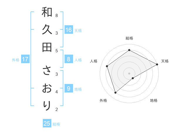 和久田 さおりさんを姓名の画数から五運を鑑定