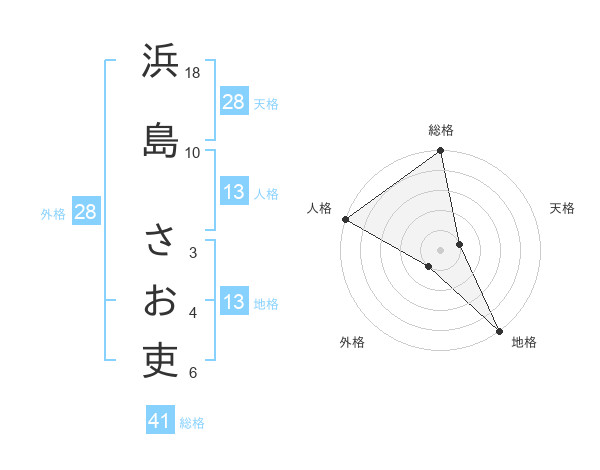 浜島 さお吏さんを姓名の画数から五運を鑑定