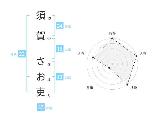 須賀 さお吏さんを姓名の画数から五運を鑑定