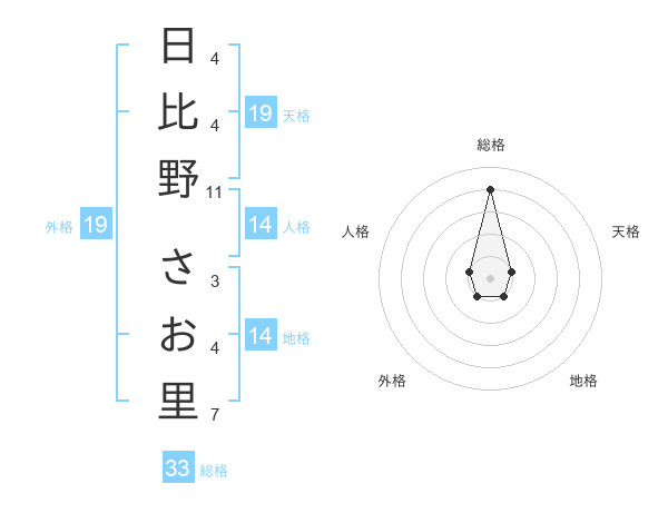 日比野 さお里さんの総格は33画の4点