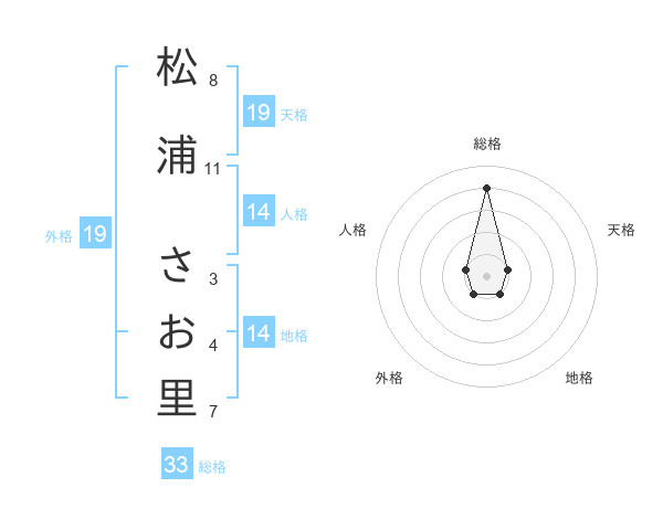 松浦 さお里さんを姓名の画数から五運を鑑定