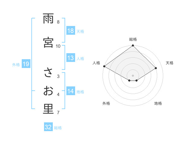 雨宮 さお里さんの総格は32画の5点