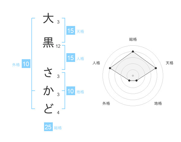 大黒 さかどさんを姓名の画数から五運を鑑定