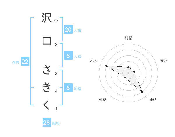 沢口 さきくさんを姓名の画数から五運を鑑定