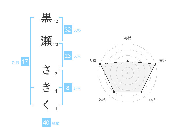 黒瀬 さきくさんを姓名の画数から五運を鑑定