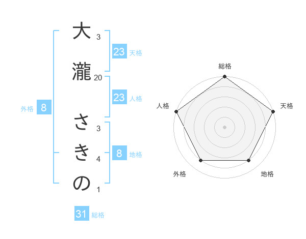 大瀧 さきのさんの天格は23画の5点!