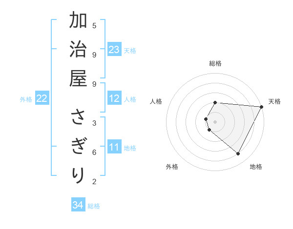 加治屋 さぎりさんの天格は23画の5点